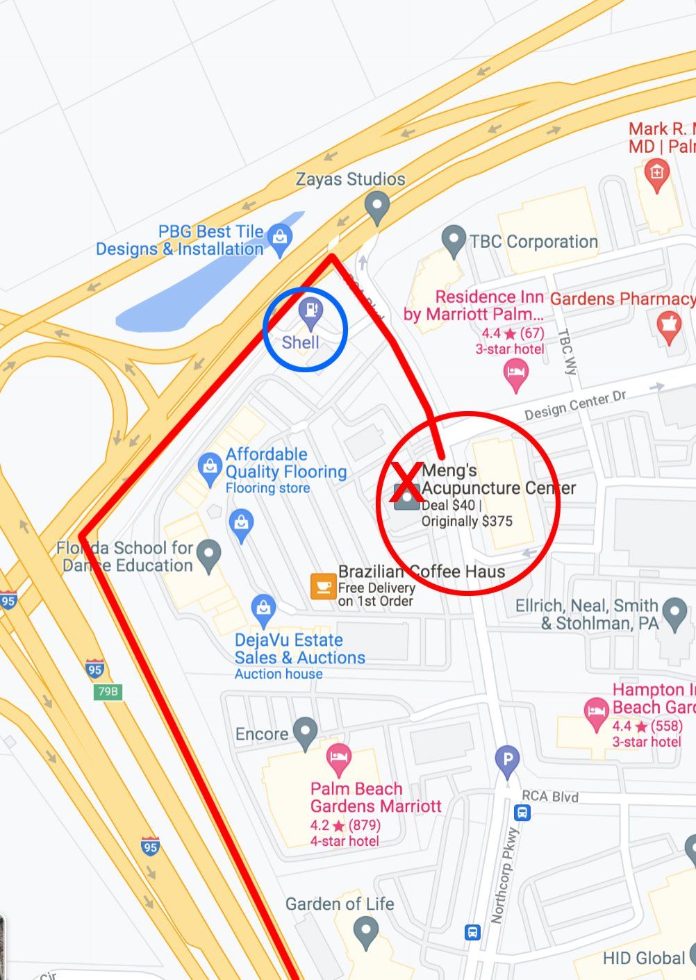 - Less than 1/4 mile driving EAST on PGA turn right RCA Blvd.
